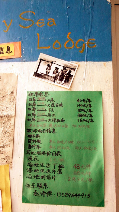 对了,在古城国际,由于正好有三人间提供给我们(BINGO、大叉和我),我住上了本次旅途中唯一的非床位房间,咳,全程床位的计划就这样被打破了。三人间会员卡是一百一十多(具体记不清了),人均40左右。不过话说回来,在双廊海地那时候,虽然是床位,但也算是三人间,哈哈哈,就差一个独立卫浴了。