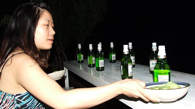 开始继续占领3号院前边的桌子,碗筷、啤酒摆起来~~~~~~~