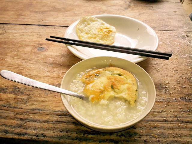 ★早餐有粥、牛奶、鸡蛋、饼、面……等,除了面以外都是套餐。上图摄于9月6日,吃的是最便宜的8元套餐(粥+鸡蛋+饼)。这个粥……份量很少的,能吃的童鞋,必须两碗以上。。。