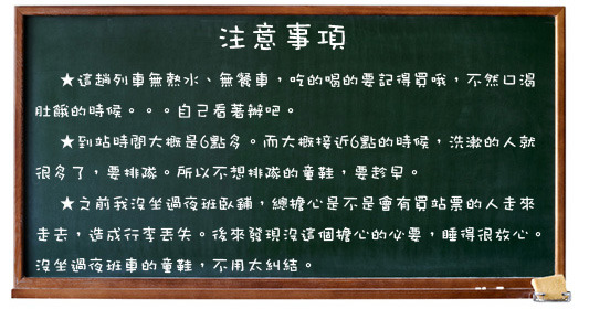 在之前找攻略的时候,看到有网友说,这趟车很容易早点(比较神奇的事情)。由于开车时我没有注意看时间,所以具体是否真的早点了,也无从知晓。只是知道,在晚上11点我们还在站内给手机充电的时候,车站工作人员就开始招呼我们上车了,大概10分钟后,绝大多数乘客就已经登车完毕了,把我们给汗的,多充一会儿电都不行。。。所以,如果有坐这趟车的童鞋,能早就尽量早些到吧。。。