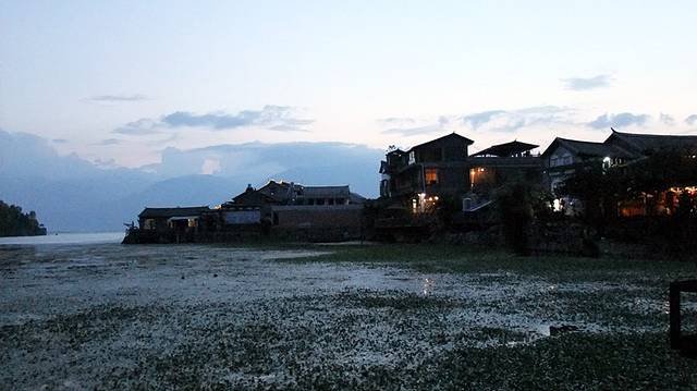 到了里格下车,此时的雨势开始大了起来。由于我们几个都没有预订客栈,这个时候就只好冒着大雨,一家一家地寻找地。其实,里格的客栈还是很多的,不用怕没有地方住。最后我们仍然把目标放在了YHA,住进了泸沽湖老谢。