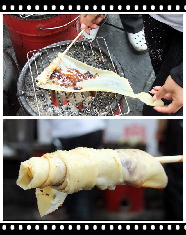 隆重推出一个让我印象深刻的大理小吃。。烤乳扇!奶味儿十足!十足的奶味!腻!腻!腻!我咬了一口,都没有吞下去,就有快死掉的感觉,迫不急等地扔掉了!我平时也是经常喝奶的人啊!!!那种味道终生难忘!