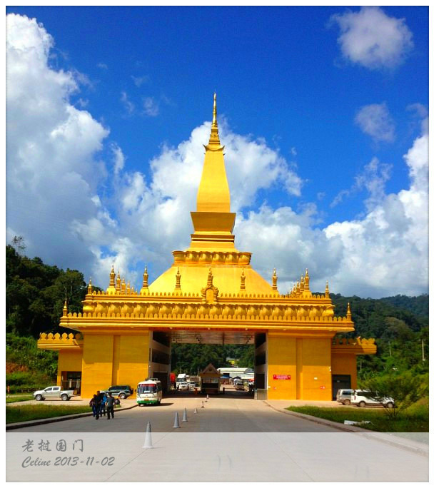 这栋仿建塔銮的房子就是老挝的磨丁口岸