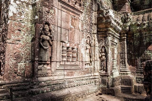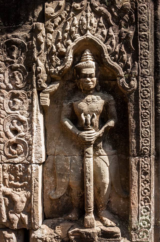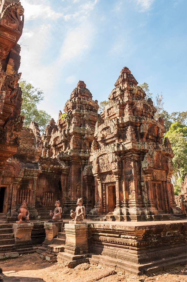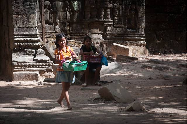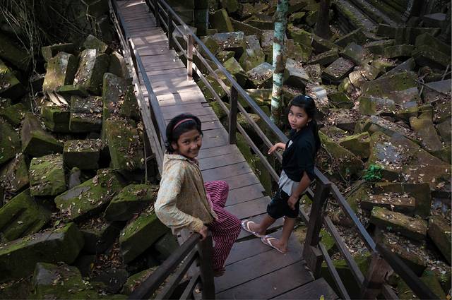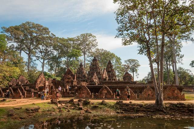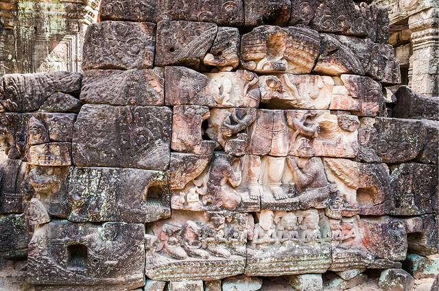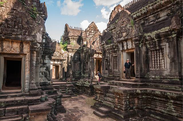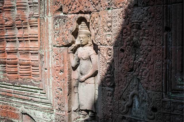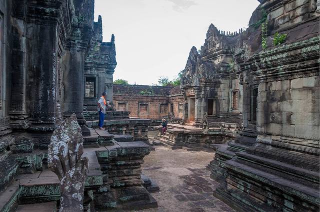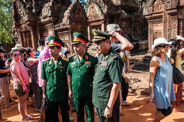 女王宫一般都会去。女王宫虽然不大,但其雕刻工艺精美细致,在众多寺庙中确是首屈一指。但是这个寺居然不是统治者造的,而是两个地主兄弟建造的。传说中的“高手在民间”就是这个意思吧。在女王宫碰巧遇到越南军官来访,这帮军官只顾着让随从给拍照,背后的女王宫倒没看几眼……后来google了一下军衔,领头的是个少将。