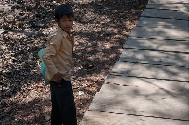 计划最后一天行程的时候,月亮先生说他叔叔刚晋升军官,在崩密列附近的一个军营,我们从崩密列出来可以去找他见见面。我举双手同意,跟柬埔寨军官合影的机会可不是人人都有的。不过后来因为在崩密列陪小孩们玩得太久,时间来不及也就作罢了。