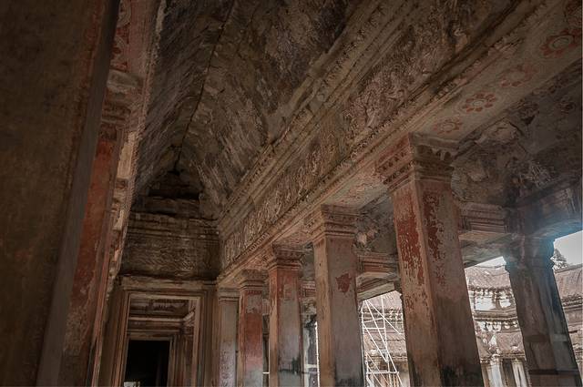 吴哥寺的走廊立柱统统是双排的,算是它的一个特点吧