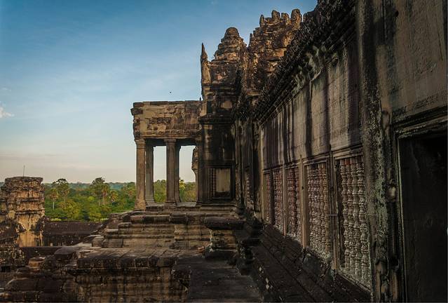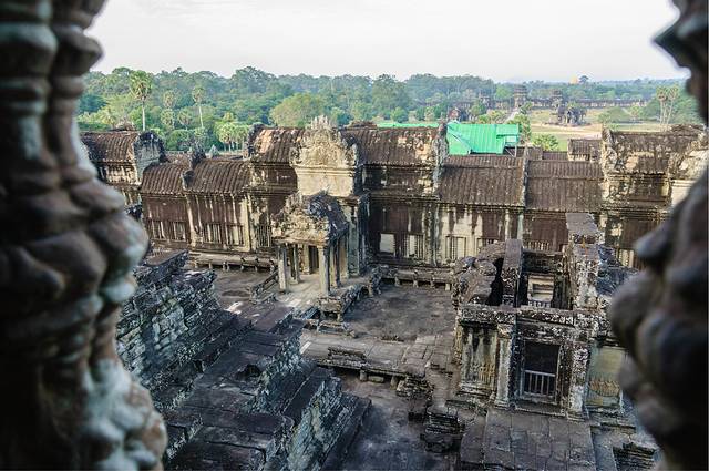 登上藏经阁看吴哥寺一角
