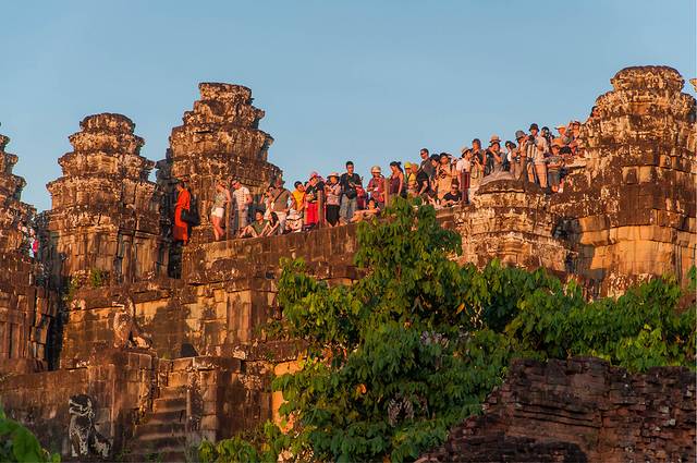 巴肯山的日落太拥挤了,最顶层只允许容纳300人,所以在下面排队的人很多。想要占领好的位置估计要四点多钟到巴肯山。这里的日落比吴哥寺的日出要喧闹很多,完全找不到日落那种静谧的气氛。其实去其他比较冷门又比较高的寺看日落应该更有感觉。