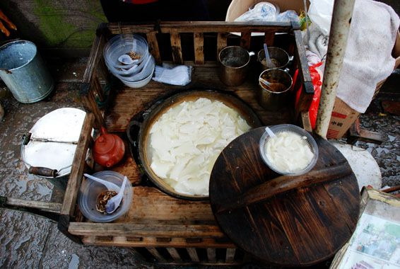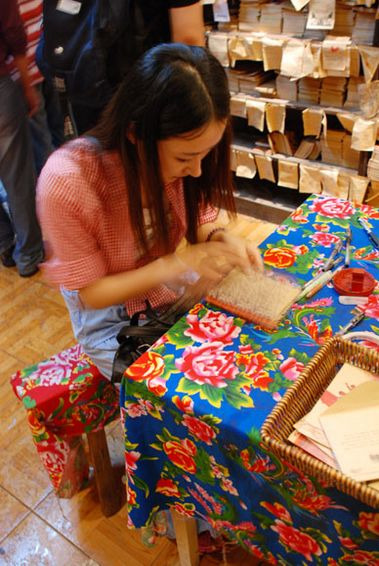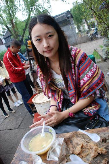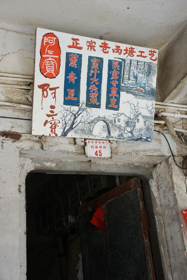 下载的西塘旅游攻略终于派上用场了,这桥底下的钱氏豆腐脑果然很好吃呢,虾米很多。经过一家小店,里面所有的墙壁都贴满了游客的留言,很好玩很温馨,于是我们买了一个很有特色的本本,写下了我想要说的话,并让维尼站在大桌子上给我贴房梁上去了,个子高还是有用处滴,哈哈。