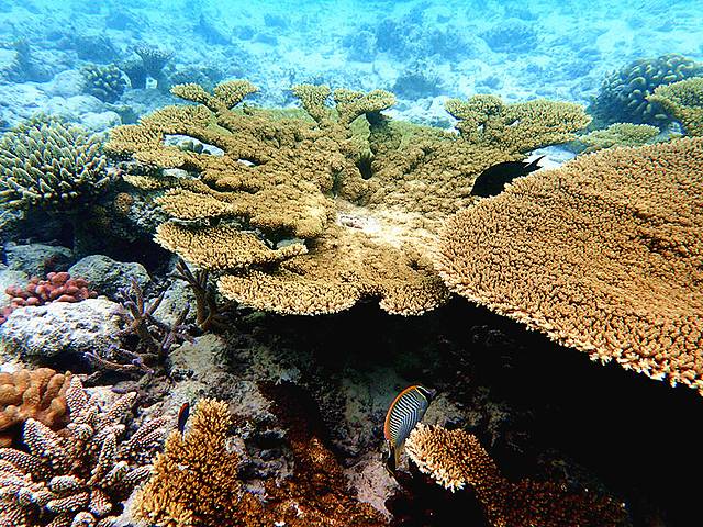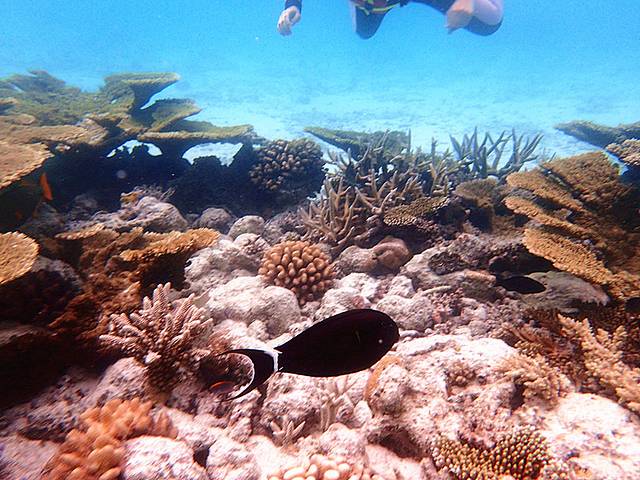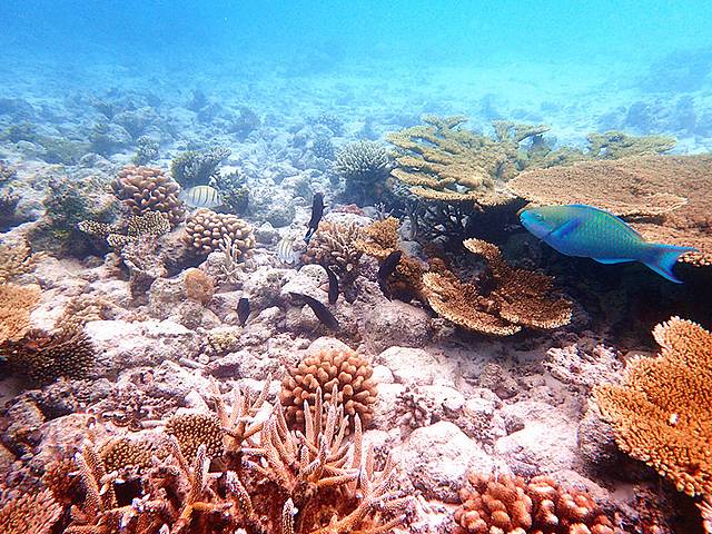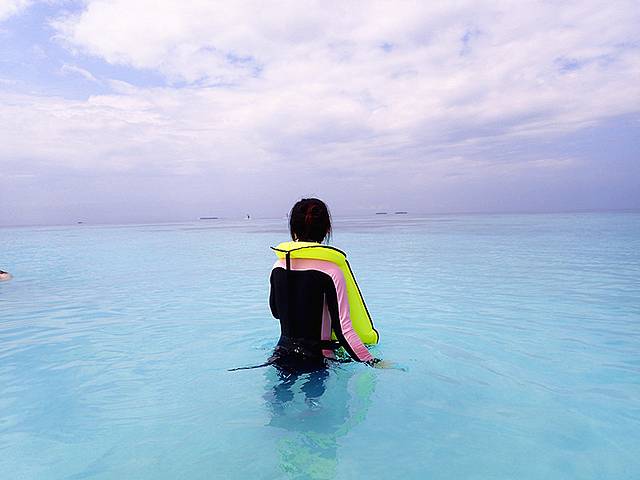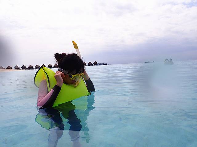 由于感冒不能体验水肺潜水,然后游泳太菜鸟了不能参加环礁浮潜,我们俩只能在岸边浮潜了,所以这次的浮潜照片都是水屋边浮潜拍摄的,具体后面到水屋部分的内容时再介绍