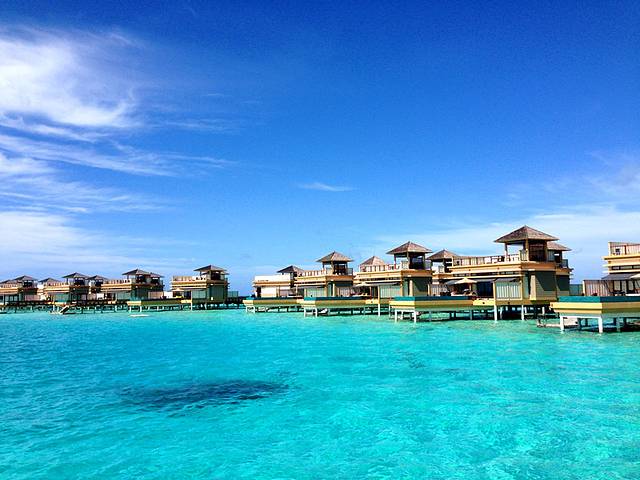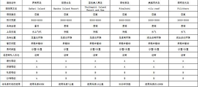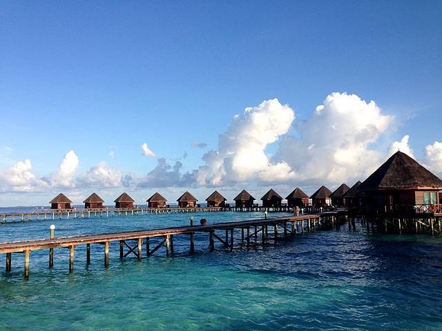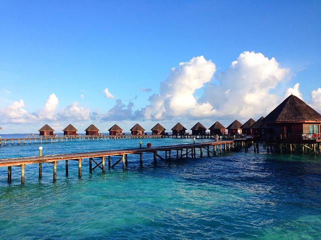 4、风景美还是浮潜好,要沙屋还是水屋。好多游记说风景浮潜两难全,全了都是土豪岛,包括代理也会这么说,其实建议第一次去的还是以风景美为主,岛上最好有沙屋有水屋,每种都体验几晚,如果所选的岛浮潜不好可以参加岛上活动,基本度假村都会定期组织出海浮潜滴,如果跟我一样双岛可以选一个浮潜好的一个风景美的,但其实根据我的判断好多信息都是瞎掰滴,好与不好真的都是主观感受,攻略说蓝色美人蕉浮潜A级,但我不觉得有多好,攻略又说海龟岛是C级浮潜岛,但我觉得他们家没比蓝美差啊,后面说道浮潜上照片,有图有真相,所以建议大家不用太信攻略了