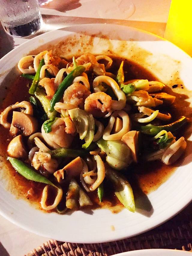 上美食的图片,下面这盘是泰式炒海鲜,不晓得是我比较偏好泰国菜还是怎么滴,反正觉得很好次