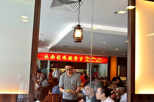 这家鸡饭店其实是卤煮看台湾美食节目《食尚玩家》才知道的,只记得玛莎去拍摄的时候说了一句这家店是当地人推荐的,据说在本地人里人气很火,去了之后发现他们拍的场景就像路边大排档一样,非常心水,一般美食都藏在这样的大排档里。不过卤煮去的时候他们家已经换了地址,环境也装修过了,不过仍然都是本地人在排队,很多都是附近的上班族挂着工牌来吃的。卤煮在找他们家的时候根据他们的旧地址找过去发现没有这家店,然后就拉了边上一个咖啡店的小伙纸问,小伙纸说你们真会找,很少游客会来这家吃的,但是味道真的很好,他们当地人都觉得这家店不错,然后小或者告诉我们他们家换地址了,换到不远处的United spuare,走过去五分钟就到了,所以他们家呢依然还是在红线Novena站下车,出来之后沿着thomson road往左走几十米就到了United Square,他们家就在广场面向thomson road的转角处,找不到路边拉个当地人问问都知道他们家的,或者也可以打名片上电话问老板娘,老板娘是个华人会说中文