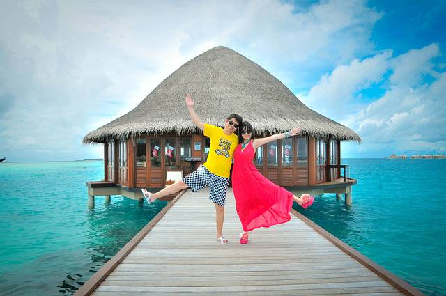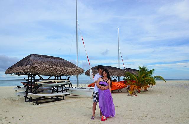 马尔代夫AV岛上最大的特色就是岛上有个摄影工作室为客人提供拍摄服务,工作室是一个菲律宾女孩在经营,叫Rhea,目前摄影师就她一位,通常岛上提供婚礼服务的时候,Rhea就会跟拍婚礼,岛上举办婚礼2500美金起步,据说有段时间搞活动订2沙2水4晚以上蜜月的客人可以赠送婚礼来着,现在貌似没这活动了。通常没有婚礼的时候工作室会为蜜月客人提供免费拍摄服务并赠送一张打印照片,但是底片不送哦,如果各位想带回照片是需要预定他们的摄影套餐的。我订的是369美金的套餐,一本相册+70张底片,实际拍摄张数会多一些一般工作室也会送给客人,通常拍摄完制作时间至少要一天呢,亲要拍照的话可不能最后一天离岛的时候拍,那样就只能加邮费寄回来了。一般蜜月都是两个人去,就算是自带三脚架和快门也很难拍出满意的合照,所以花个几百刀拍照也算是个纪念吧,最贵的套餐好像是400多刀吧,,反正我这个属于第二第三高的价位了,要是不愿意花多的钱他们家也有几十刀的套餐的