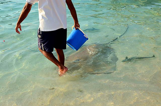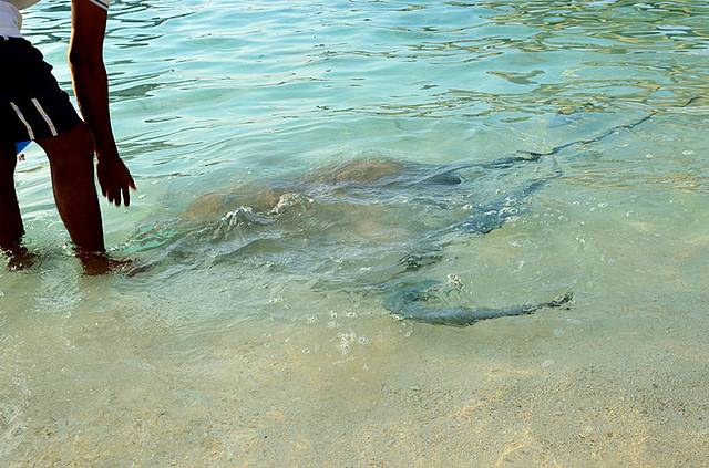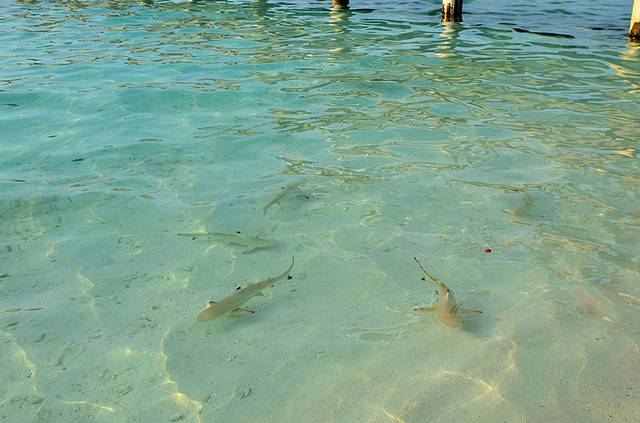 岛上每天下午6点小黑会在码头喂魔鬼鱼和鲨鱼,后来几天我们每天六点不到经过码头就看到这几位大家伙在水里游来游去等着被喂食,小黑说,每天来的魔鬼鱼通常不是同一只,每只都给他们起了不同名字,除了魔鬼鱼也能看到来抢食的鲨鱼宝宝