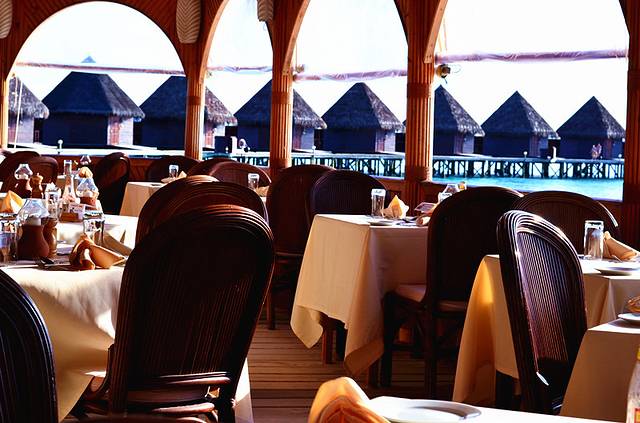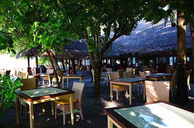 水屋因为跟主岛分开的关系因此餐厅和前台都是独立的,但是水屋客人可以去主岛用餐(提前和酒店预约即可),但是主岛不能去水屋用餐