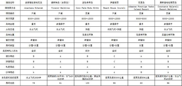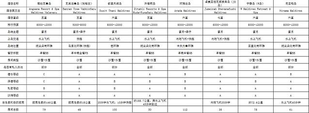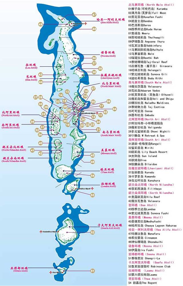 泰姬珊瑚岛Taj Coral Reef Resort 四季-库达呼拉岛Four Season Resort Maldives Kuda Huraa 喜来登- 满月岛Full Moon 卡尼岛Clubmed Kani 蓝色美人蕉Thulhagiri 天堂岛Paradise Island 瑞堤拉岛One & Only Reethi Rah 索尼娃姬莉岛Soneva Gili 伊瑚鲁岛Angsana Ihuru 悦榕庄-瓦宾法鲁Vabbinfaru 白金岛Hudhuran Fushi 魔芋岛GIRAVARU ISLAND RESORT