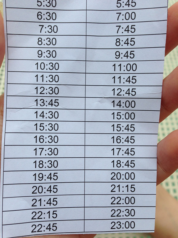 主岛内容终于码完,令人期待的水屋来了,薇拉瓦鲁岛由于水屋和主岛是分开的,因此,每天定时有多尼船往返主导和水屋,换房间的前一天晚上管家会给你一封换房信告诉你换房时间,行李打包好放在门口即可,浮潜设备和行李放一起,行李员会搬到水屋,之前浮潜设备主岛和水屋分开借用的,现在不是,主岛借的可以带到水屋,归还只要放在水屋前台即可。一般退房时间不用太早,因为水屋通常2点之后才会收拾好,所以沙屋不着急退房 下图是来往多尼船时间,左边是主岛出发前往水屋时间,右边是水屋出发前往主岛时间