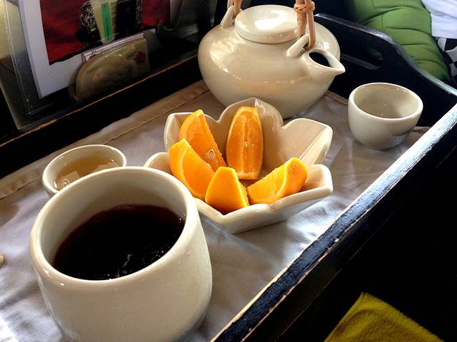 这是餐厅的户外座位,通常大家都坐外面,就算下雨也喜欢坐屋檐下面,很少人会坐室内的位置,毕竟谁都不希望浪费边吃美食边欣赏风景的乐趣