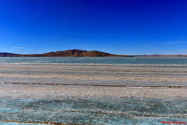 没错!这是错那湖,结冰的错那湖。上次去年9月份出藏时候我也是坐火车,但是看到有湖水的错那湖,这次居然全部结冰,实在是太漂亮,两个季节呈现出来的是完全不一样的感觉!
