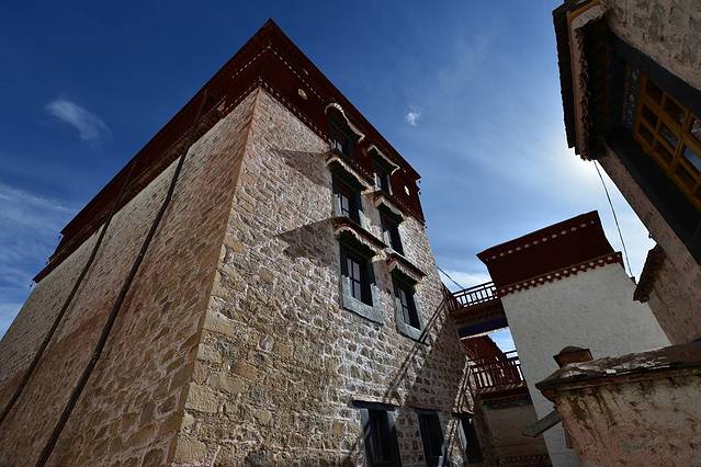 有些朋友是不是认为好浪费,拉萨待了两天啥地方也没去。因为是冬天缘故,当时貌似珠峰那边有下雪情况,所以一方面要在拉萨找后续的行程搭车信息,一方面也去不了哪里,除非去个纳木错一日游,看看全是雪的纳木错。所以我还是选择留在了拉萨,色拉寺上次来的时候也进去过,看过了辩经,而这次由于喇嘛休息没有了辩经,那就拍拍色拉寺的建筑了。上图上图,还是蛮有特色的房子哦。房价不知道有没有上海贵。。。