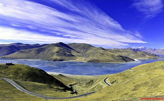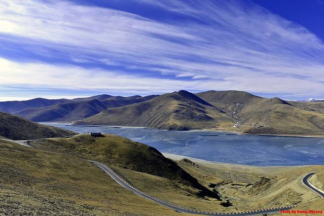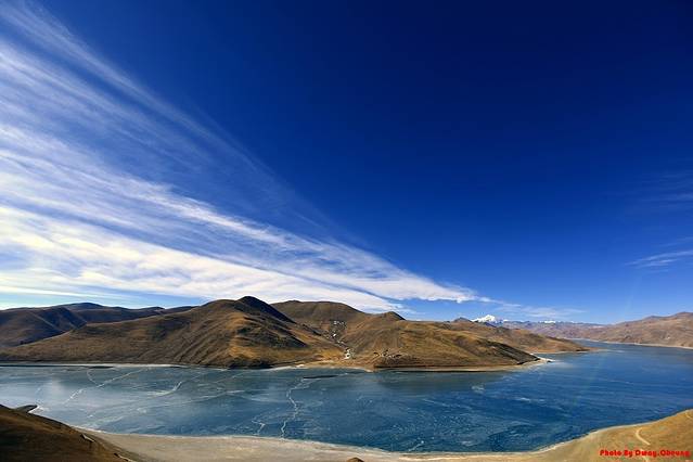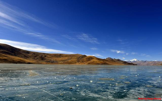 过年时候的羊湖也是全是冰,但是并不厚,好像冰下面的水依稀还能看到,由于我们到得早,湖岸也没啥人在玩,公路也没有人挡住视角,也算是一种幸运吧,所以很好的将大场面给Hold住。上图上图,不解释!