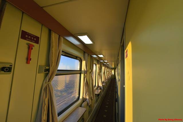日出过后的阳光其实非常耀眼,所以能有如此机会我当然就不会放过,我还有更疯狂的想法就是将最后一节车厢的尾门给打开,我可以拍到铁路,但这个的确实现不了,有点可惜了。不过也没关系,已经有日出了,还是弥补回来一些。下图是刚日出没多久的车厢照片,光线还是比较的柔和温暖。