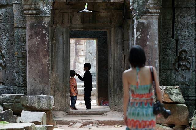 吴哥是近距离大景别,所以超广角是必备,再加一个拍人像的中长焦即可。脚架可以不带,存储卡和电池一定要带足,不嫌麻烦的话带上反光板更好。