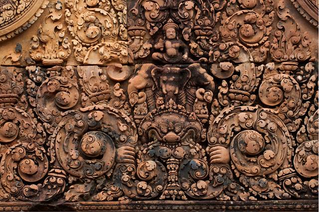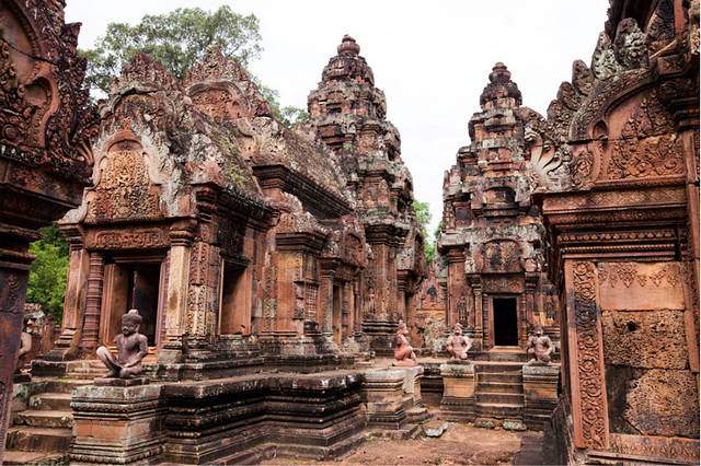 建于公元十世纪,印度教寺庙,供奉湿婆神,以精美的石雕著称,处处雕刻宗教故事,栩栩如生,目不暇给。
