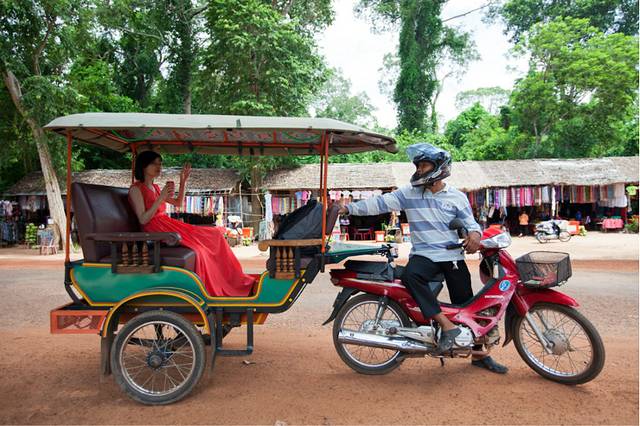 交通方式:租tutu车,3美元到吴哥窟看日出。而后又花费14美元完成后面的行程。