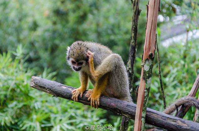 松鼠猴,三大技能:抠鼻子,抠尾巴,抠脚