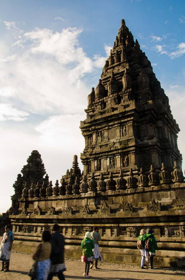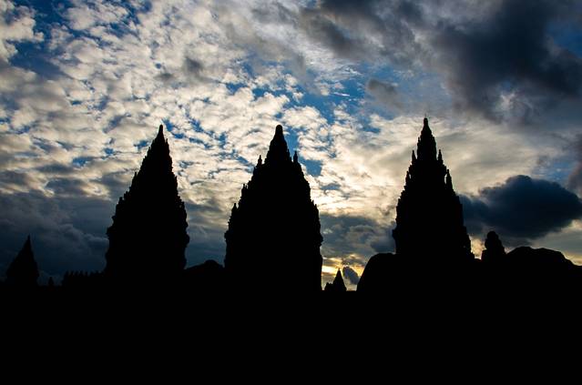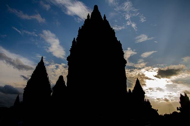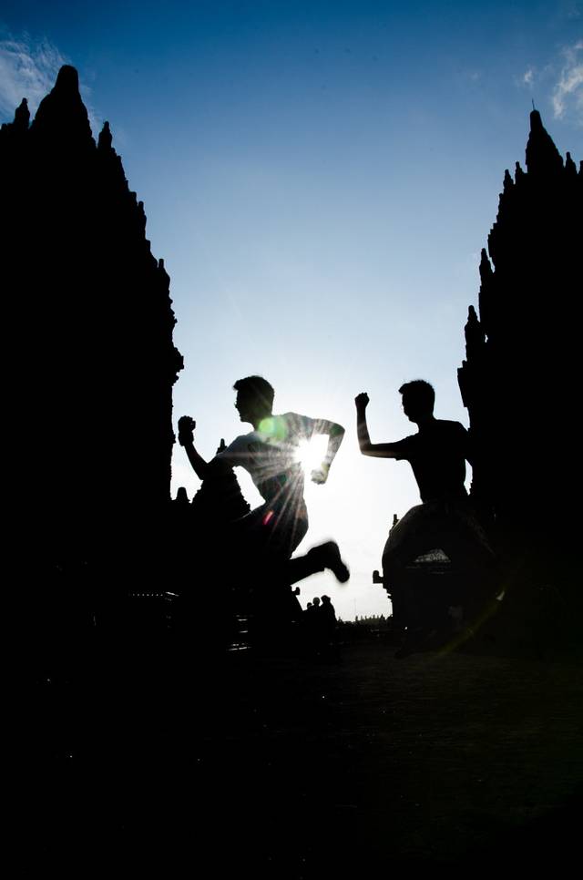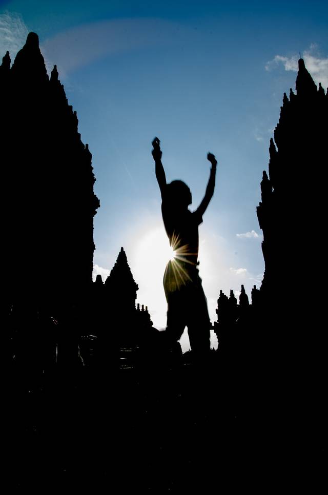 原以为下午会下雨,结果老天知道我们计划去Prambanan特地给了个晴天。Prambanan门票216000,同样学生半价。这里有吴哥的影子,但是吴哥基本随便拿出一个寺都可以秒杀Prambanan,去过吴哥就不要对这里有太多期待了。这里很适合看日落,拍剪影。二货们,作起来!