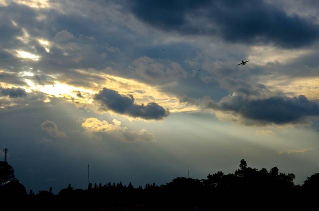 从新加坡虎航飞日惹。当地时间晚上6点到。由于暴雨飞机在天上转了近半个小时才敢落地,让我们不禁担心起后面两天的行程……