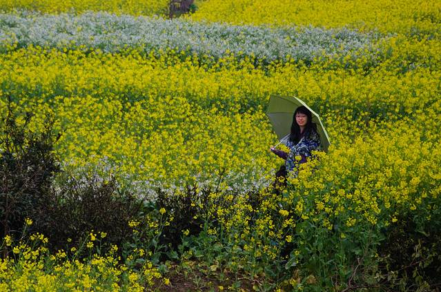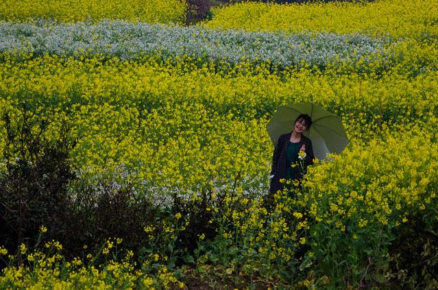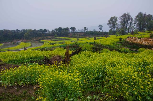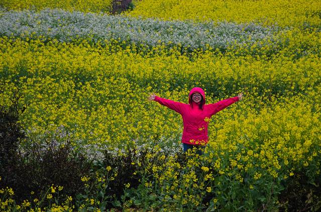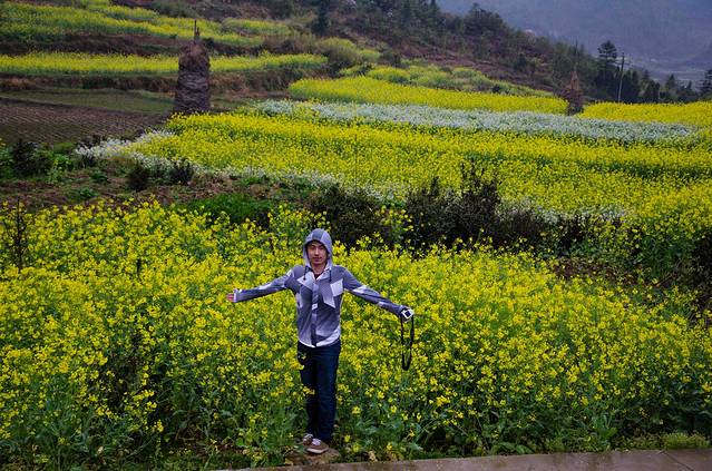 入住花海人家,旅馆门口有一片还不错的油菜地,为了回去跟同事朋友交差,只好捡了一片还算旺盛的油菜地拍了一组“花海”。