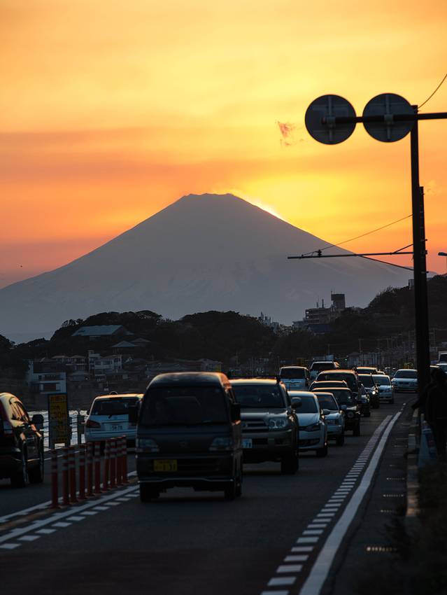 从长谷寺沿着海边骑行到江之岛大概1个小时,加上拍照的时间,路上的风景很多。而且到江之岛那边后还能看到富士山,封面的照片就是在回来的时候富士山日落拍到的,太壮观了。