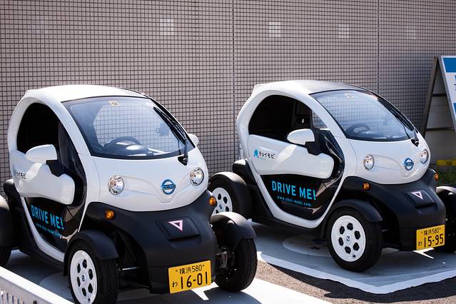 很多环保的小车。日本是很环保的地方,很多车都是非常的样子奇特。