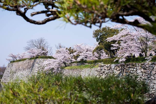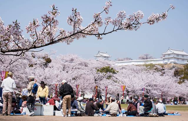 完全爬好稻荷大社之后估计需要1个小时,时间还是蛮早,所以继续返回京都然后新干线直达姬路城,到了之后发现城堡原来处于装修期,不过没所谓,不影响其他风景的拍照,姬路城里面的樱花再次震撼到我,因为实在密集度非常的高,而且里面很多人在Picnic,很惬意。