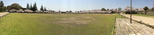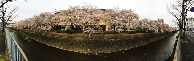 金阁寺看完后一路飞骑到岚山竹林,但那边也是人非常的多,照片直接略过。之后从二条城发现一路樱花,手机拍了个全景。