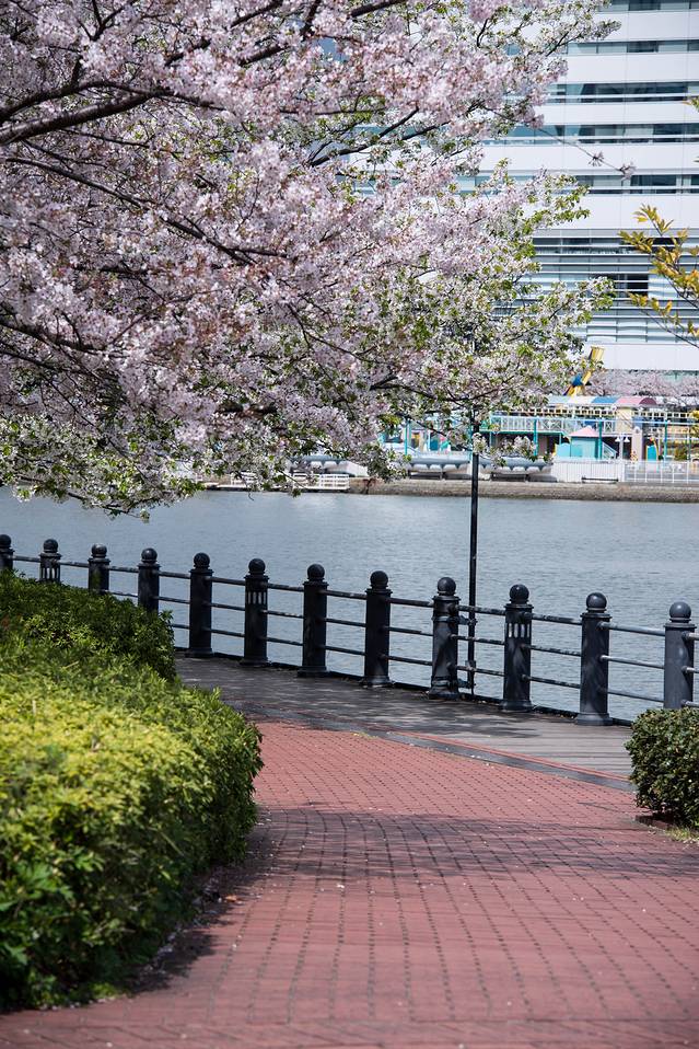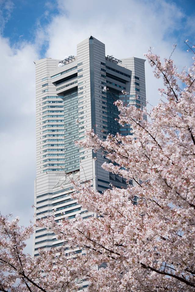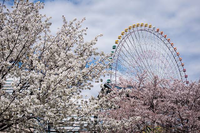 樱花主题自然是少不了的。横滨的樱花同样让人惊叹,因为它和周围的景结合起来实在是太美了。