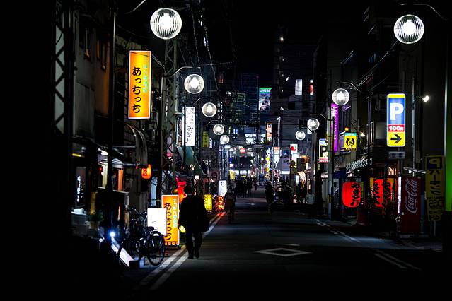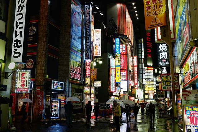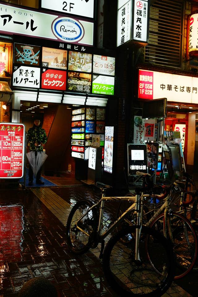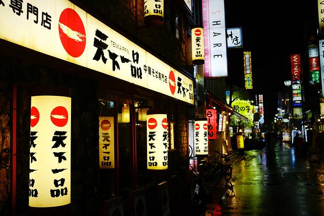 新宿的夜生活是非常丰富,因为这里有歌舞町一条街,晚上的时候可以去走走,当时正值下雨拍照的话又担心淋湿相机所以拍得不是很多,街道上的灯光色彩却在雨天显得格外漂亮,下图就是传统招牌。