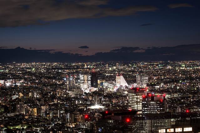 虽然说这里的夜景肯定是没有东京塔那边漂亮,不过能在这么高的楼上鸟瞰东京还是不错的。而且东京的夜生活是非常丰富,因为每天很晚都有很多人还在繁华闹市区停留着,一大早的时候也会遇到一些宿醉的人回家,可能他们第二天不用上班吧。