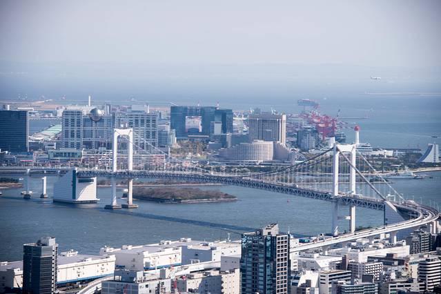 远处的地方应该是台场方向,有个娱乐场就类似于欢乐谷这种。然后飞机飞向右边不知道是羽田机场还是成田机场了。