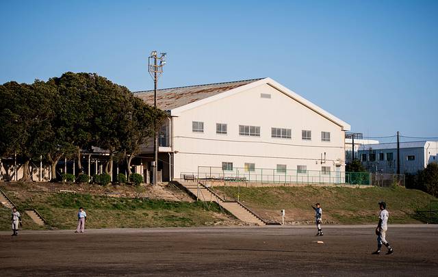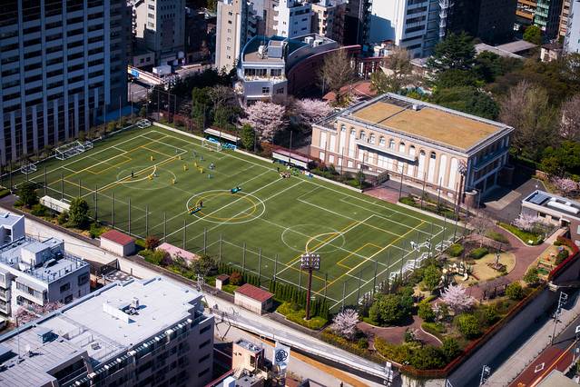 下面是个学校足球场和橄榄球场通用的地方。