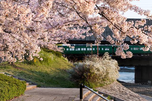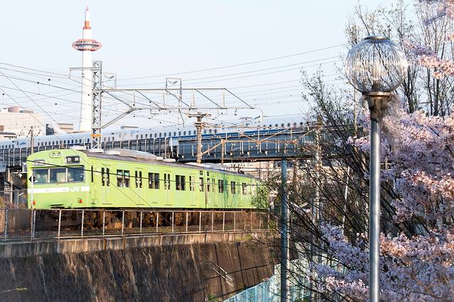 京都骑行坐新干线到达京都时候发现离京都站不远的地方有个小公园,于是当天晚上就去踩点观察观察,发现是个非常赞的地方,因为有河流,有铁路桥,有火车,有樱花,所以第二天一大早就从Piece Hostel Kyoto 出来直奔过去,阳光很柔和,而我还专门等到有火车通过的时候去抓拍,很满意的一组照片。