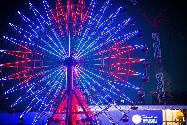 摩天轮的开放时间是10点还是11点,具体记不太清楚了,估计坐在上面的人会很享受眼前的一切。
