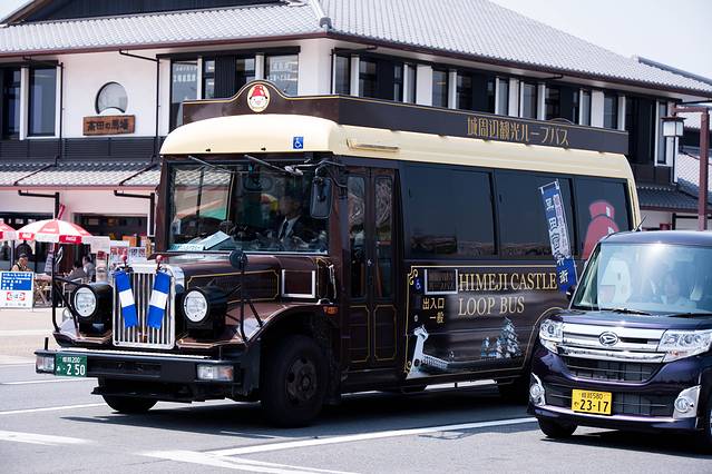 姬路站出来直接走15分钟不到就可以到达姬路城的,日本其实很多地方都很小,只要了解地图走走路就可以到也不需要地铁或者打车,路上遇到的车,很特别。