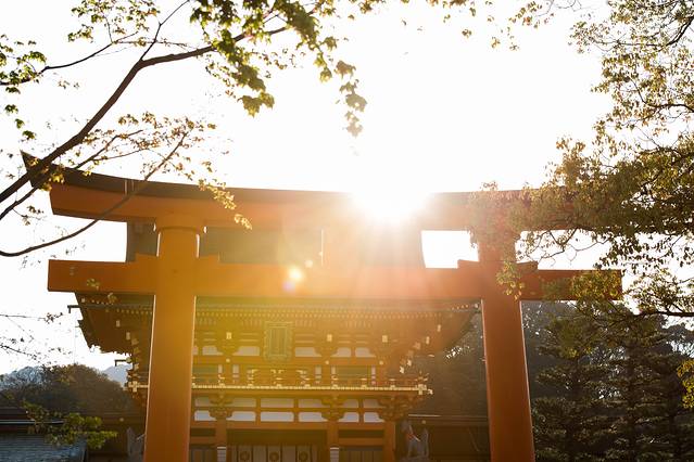 一般认为是在迁都平城京后,由藤原家族为朝拜他们的保护神而建的。因其屋顶的形状具有特性,该寺院的建筑式样被称为“春日式样”。
