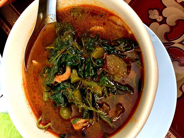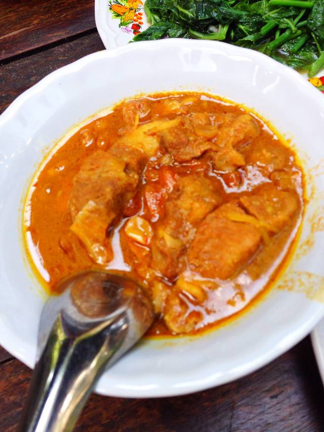 这个就是泰北的咖喱猪肉了,跟传统泰式咖喱料理不一样的是这个不放椰浆,吃的时候配米饭一起吃,上次来的时候在夜市买过这个个人觉得还是去年在也是买的味道好