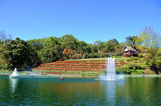 这个皇宫真的只是个大花园而已,顶多就是跟这些花合影了,里面很多地方是不能进去的,所以只能在花园里面走走,花园最高处有个湖,不是很大