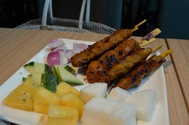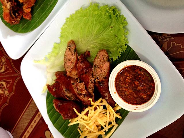 这个就是泰北香肠,里面有南姜香茅等香料,吃的时候配上蔬菜和酱料,其实味道一般,香料味道特殊,点一个尝试下就好了,或许有些人会吃不惯